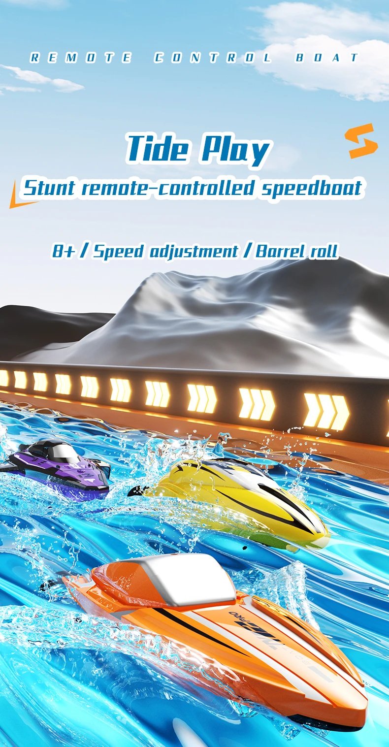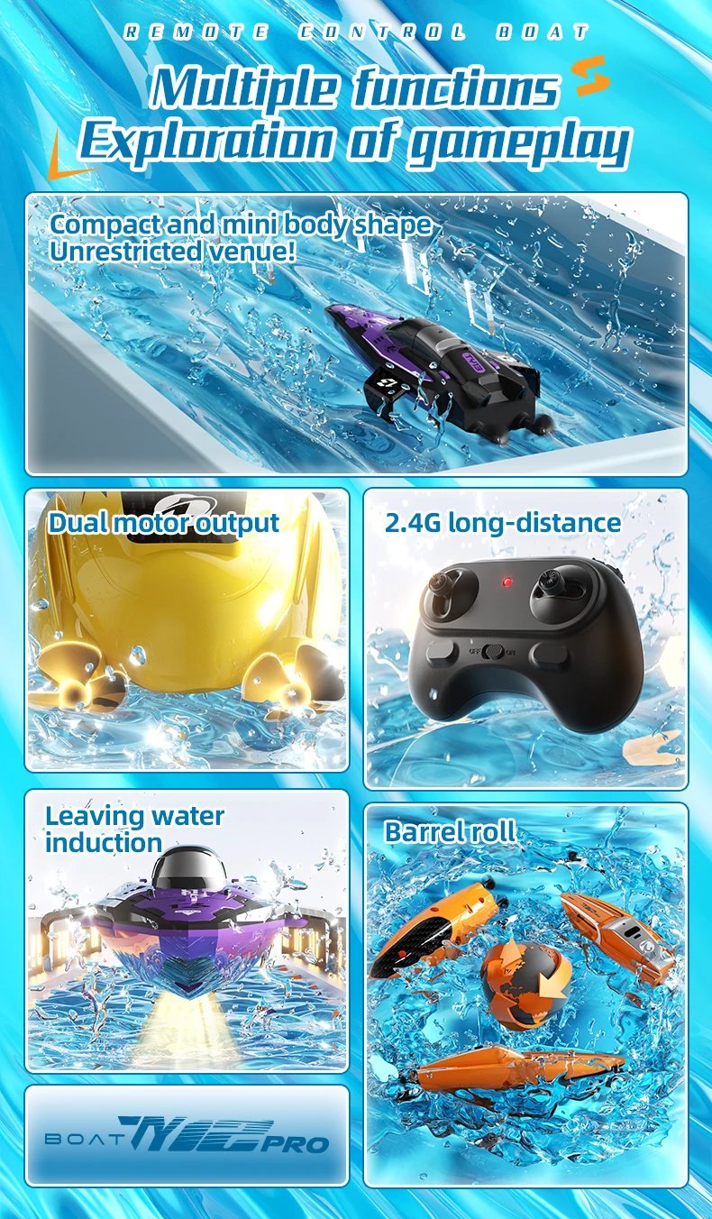 Unleash the fun with our 2.4G Remote Control Mini Boat! 🚤 Powered by dual motors, this electric speedboat offers thrilling stunt rolling action and impressive long battery life. Perfect for water adventures with its waterproof design! 🌊💨 Ready to race?